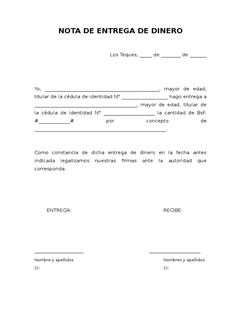 Ejemplo Nota De Entrega Dinero Word via es.scribd.com